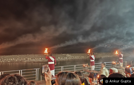 As captured in the photographs, the evening Aarti in Rishikesh is not