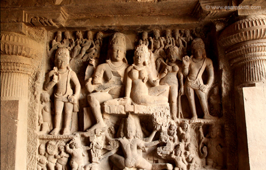 Shiva Parvati playing dice. Cave 14 known as ‘Ravan ki Khai’.
