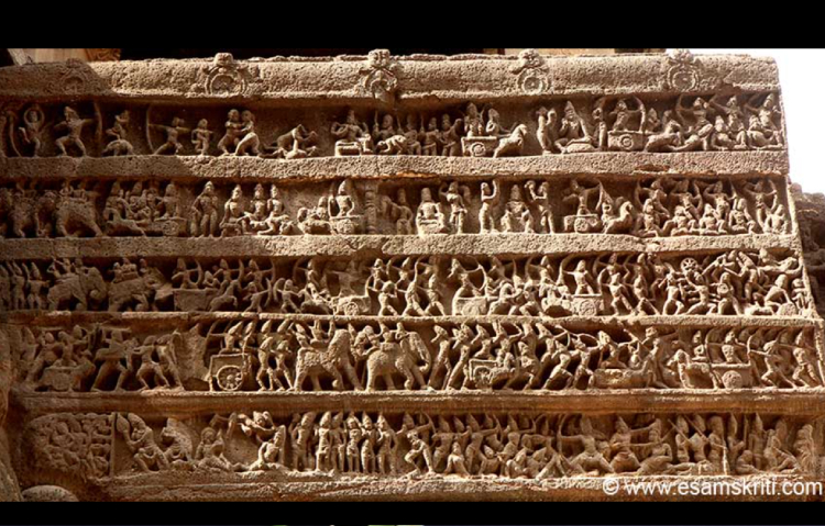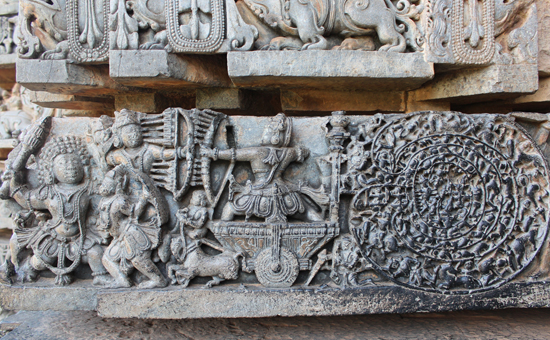 Chakravayu scene from Mahabharat in Halebidu Temple, Karnataka. Completed around 1160 A.D.