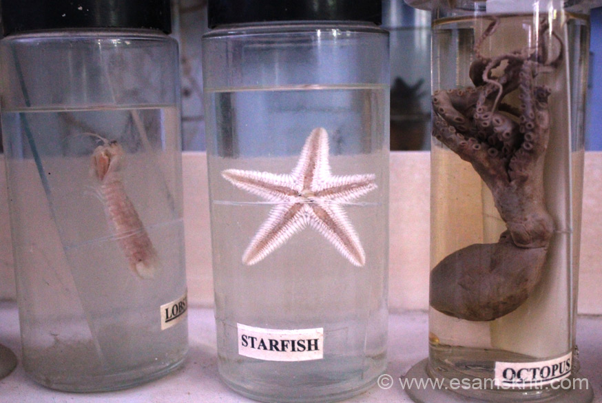 The school also has a Museum. You see some fishes for eg Starfish - it is found locally. There are lots of fishes, snakes, tribes in local dress and so on. Impressive collection.