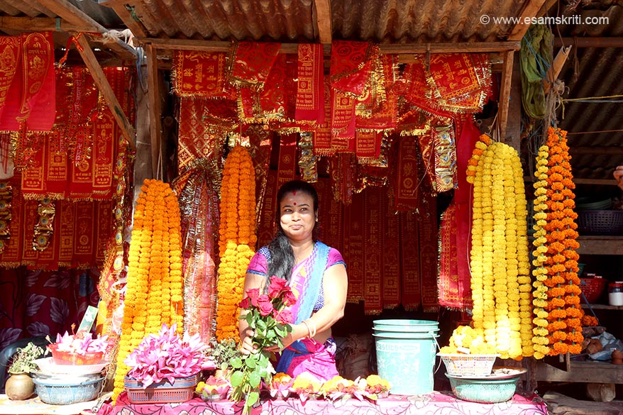 5. Shops selling flowers, garland, agarbattis. Caught this Assamese lady with sun’s rays falling on her face. Next see Navagraha temple.