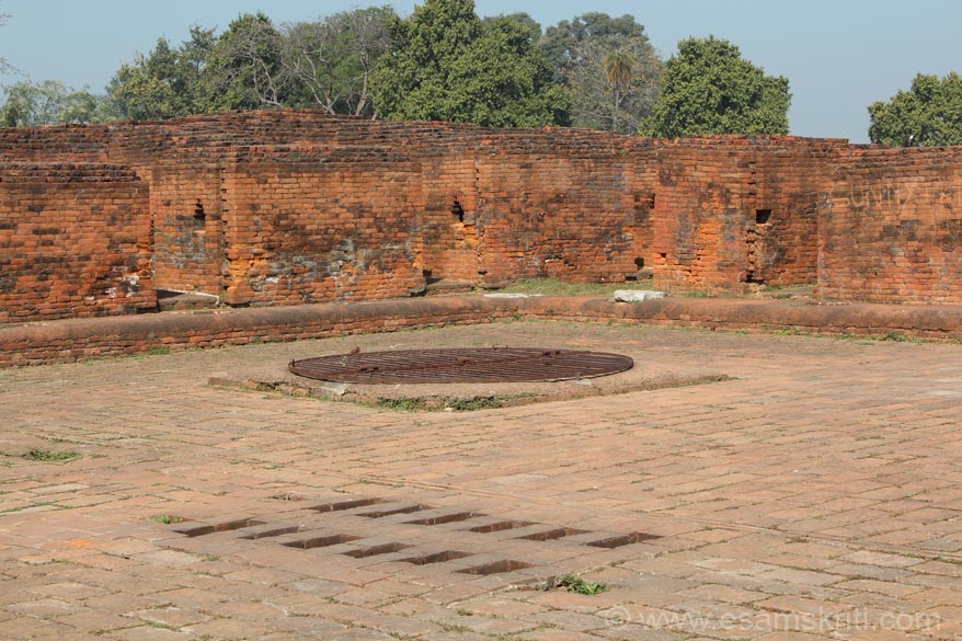 This is the platform with a number of stone column-bases, might have been used to address students seated in the courtyard. Top is the verandah and the cells. Hiuen Tsang said that he had seen a 80