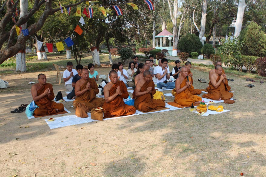 6. Monks from Burma praying in Venvana. Missed seeing Saptaparni Caves and Mahadev temple. On the hillcrets around Rajgir, far away one can see about 26 Jain temples.