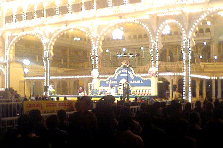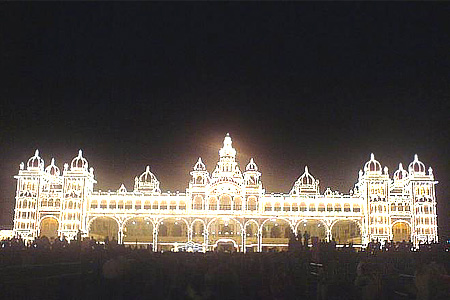 Mysore Palace lit up during Dushhera