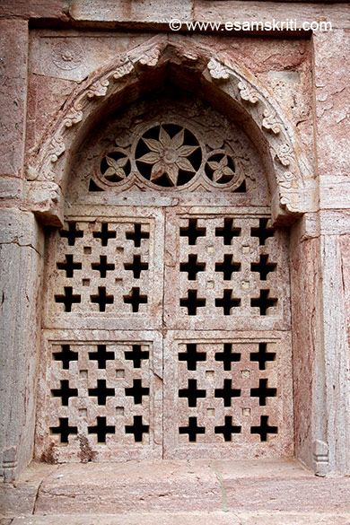 31The tomb is known for its jaali work that you see. Continuing “The main sarcophagus of Hoshang is carved in the form of a casket with receding bands & with a mihrab moulded at the top having posts of Hindu design.” Fyi Jama Masjid Delhi made from ruins of Jain temples. .