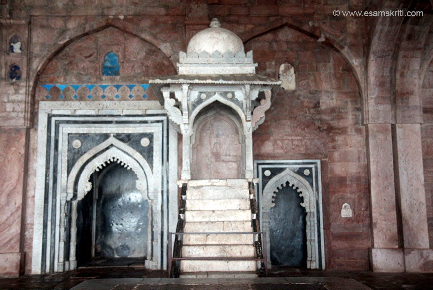 33. Supporting the chajja are Hindu style brackets as seen in Jama Masjid and Darya Khan Tomb. Pic by a local photographer. Small room next to this hall has ruins of Hindu temples. It is at Chappan Mahal and Tivoli Mahal Museums (inside Royal Enclave) that you can see old sculptures.