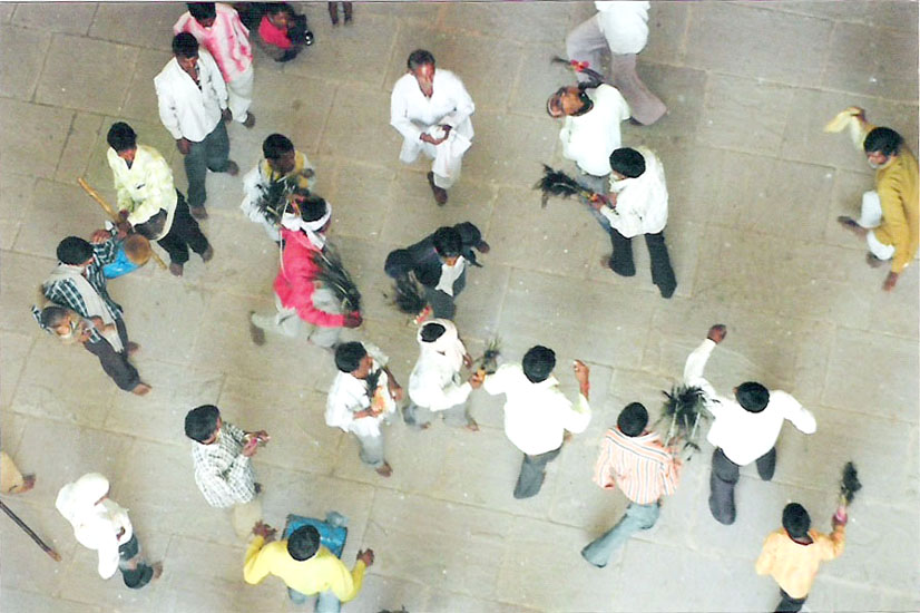 You come up the stairs into a huge open hall in front of the icon. I clicked this picture of them dancing from a height. It is full of fervor, noise and action.