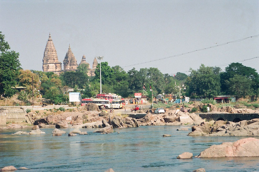 Devotees from far and wide come in buses that you see in picture, camp on the banks of the Betwa River before having darshan at Chathurbuj Temple which is what you see in the background.