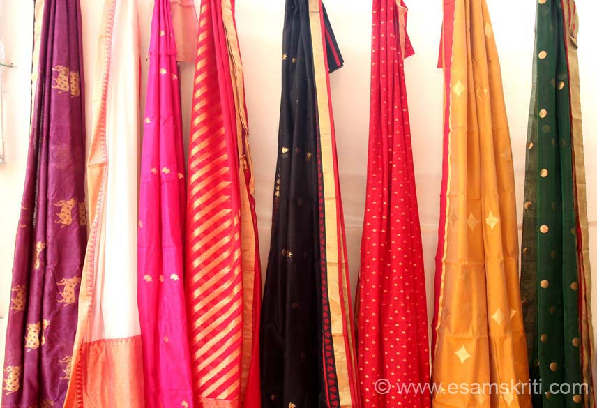 The famous Maheshwari saris and dupattas from the land of Ahilyabai Holkar Maheshwar in Madhya Pradesh. To see pics of Maheshwar Click here
