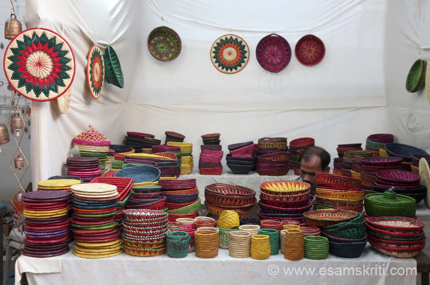 Weaving baskets from Badhoi Uttar Pradesh. By buying products displayed at the Dastkari Haat we can support artisans from all over India and keep our traditional handicrafts, textiles etc alive for the future. I bought lots of stuff too.