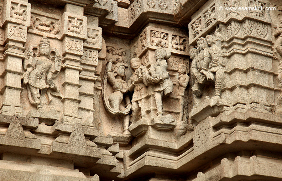 27. Left is Bali and Sugreeva yudh (fight) ie Ramayana. Right is boxing. Centre is Mohini Bhasmasur.