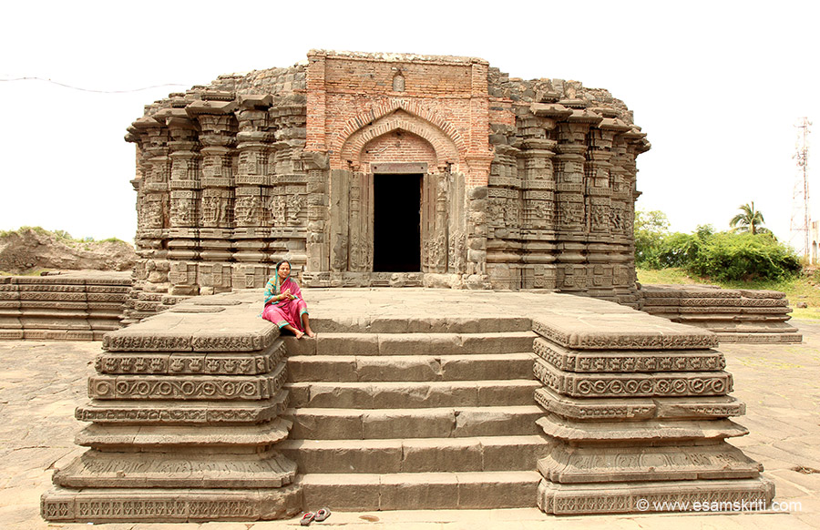 5. Temple has 3 entrances two of which you see. It has no shikhar. Sculptures damaged with time. According to local guide Subhash temple was made by Chalukya Raja in the 9th century. According to Bugdane book, ‘In Treta age on the way back from Lanka Sri Ram, Laxman, Sita once again visited Lonar, Lonar lake then was known as PANCHAPSAR lake”.