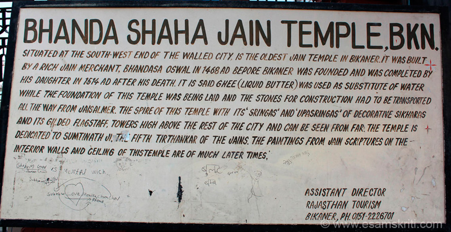This board gives you all information about the temple. To see pics of Lallgarh Palace Click here
