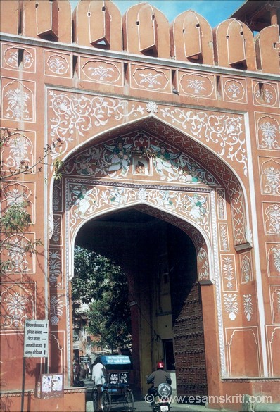 A closer view of the City Gate. To the right of the picture see the huge wooden gate. All through Rajasthan, parts of Gujarat and Uttar Pradesh you would see similar gates.