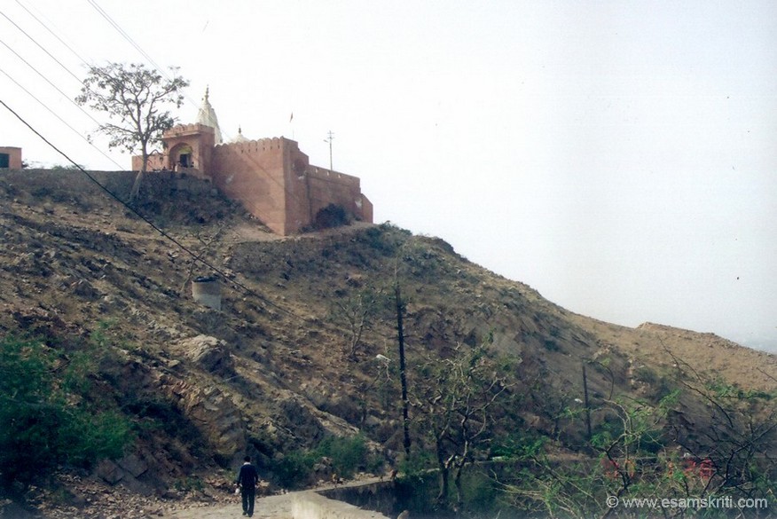 You see the rear side of the Garh Ganesh Mandir, the Swastika sign is clearly visible. It is on the top of a hill and visible from most parts of Jaipur. This mandir actually marks the genesis of Jaipur. When the foundation for Jaipur was laid a pooja was