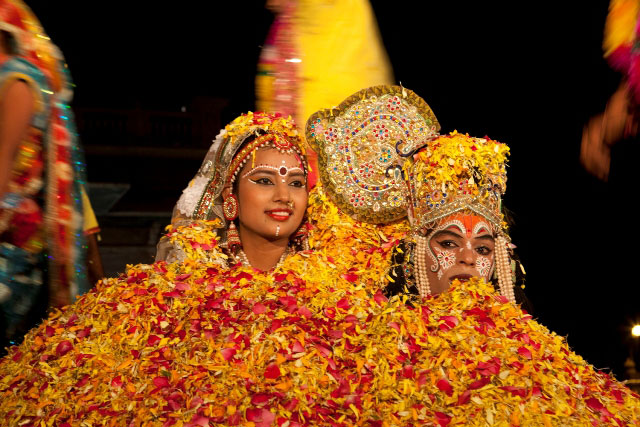 Braj Ki Holi perfromers covered in flower petals Opening Concert Clock Tower bazaar.