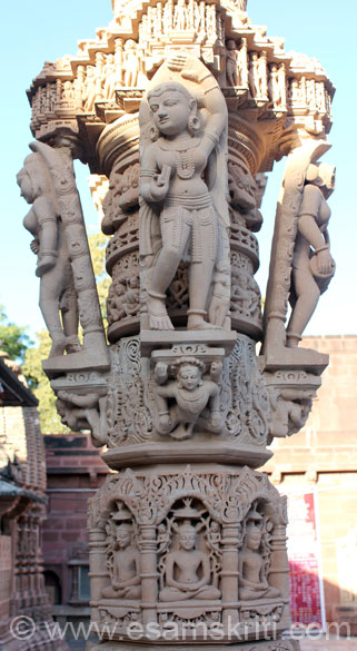 A side view of the pillar of the toran. Women images, I think are Apsaras (correct if wrong).