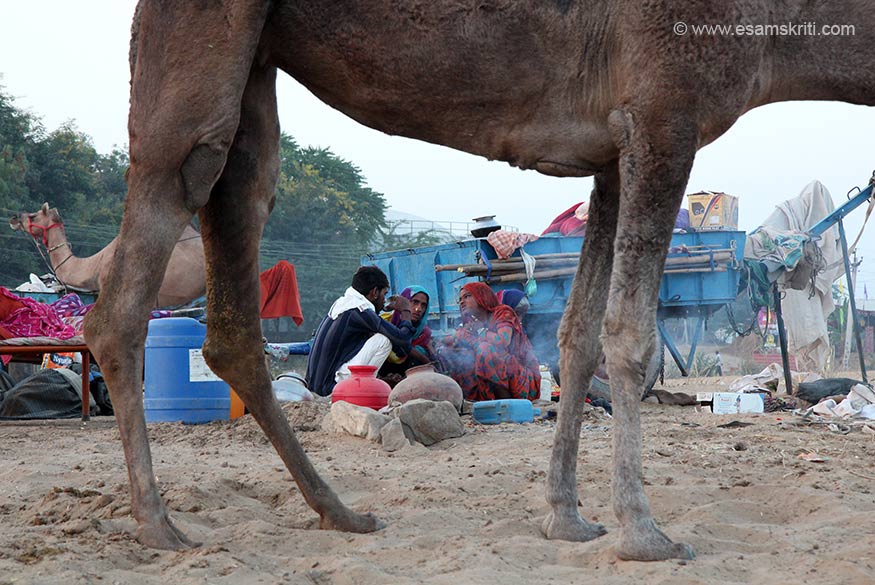 Camel owners come with families, beds and kitchen stuff. They live and sleep on ground. This album is more about Pushkar. For pics of camels shall give links later.