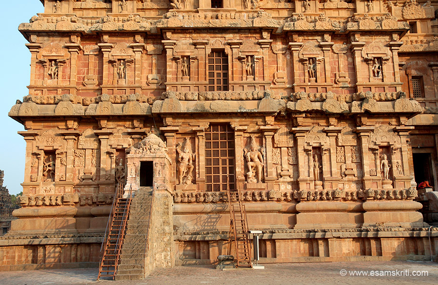 Image is of Rudhra Thandava (Shivji). This is Keralantakan gopuram part of the Chola period. It was to celebrate Rajaraja 1 victory over Kerala king Bhaskar Ravi Varman. Has 5 floors. This gopuram has granite upto first floor