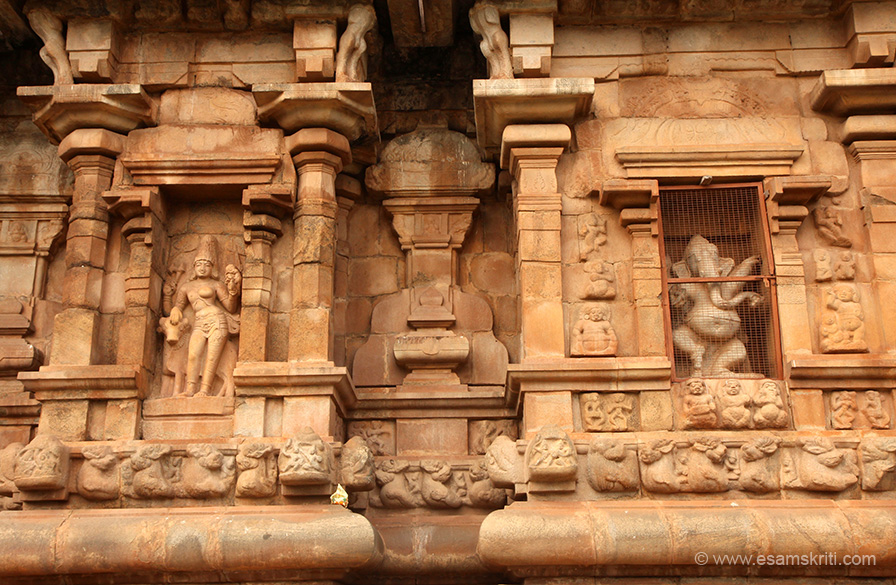 Right is Kalantaka. Left is Mahishamardini. Too focused on the Srivamana so missed taking pics of Gana, Saraswati, Lakshmi, Chandesanugraha murthi. Also missed taking close ups of lower panel and dome on top of Srivimana.
