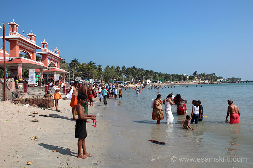 This is AGNI Theertham where piligrims bath before going to temple for darshan. The water of this place is considered sacred and known as Agnitheertham.
