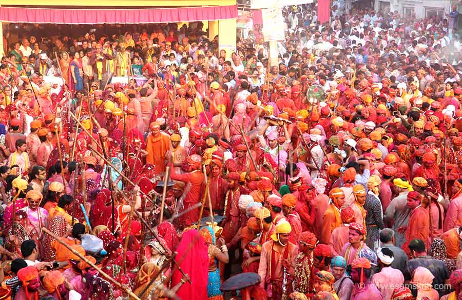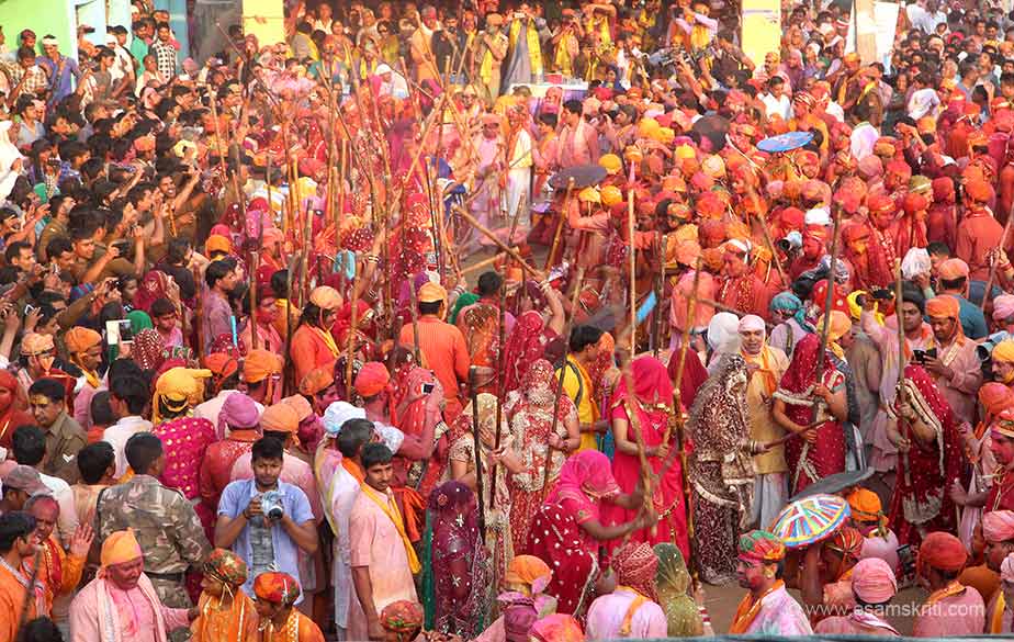 Another close up view of Lathmar Holi celebrations at Nandgaon.
