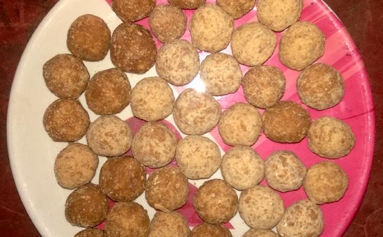 ingredients grounded coconut, and sugar; Narikolor Laru is one of the sweetest
