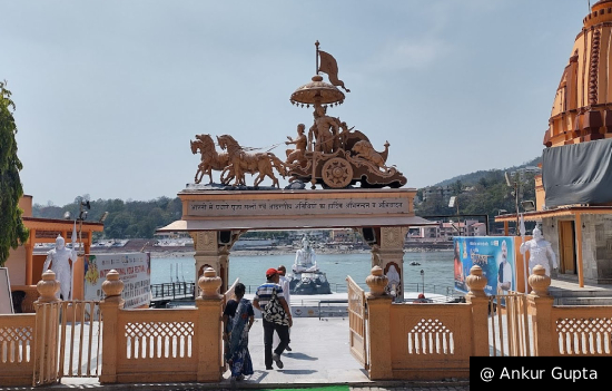 Parmarth Niketan entry from the Ganga. Notice the Shivji in the centre.