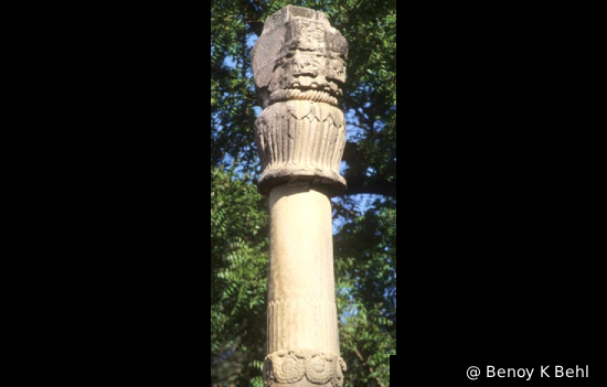History: “The pillar was constructed around 113 BCE. The pillar has a total height of 6.5 metres. The pinkish brown pillar in sandstone consists of three parts – a faceted shaft, finally finishing with a bell capital and a damaged abacus showing a geese and honey suckle ornament.