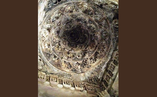 The square ceiling built-in ‘Nabhichchanda’ style is composed of a series of diminishing circles that overlap to form five cusped flowers that are deeper than the remaining. The inner roofs of the assembly hall known as the ‘Mandap’ is worthy of admiration as it is created like great upside-down pools with flower and leaf motifs and Apsaras.