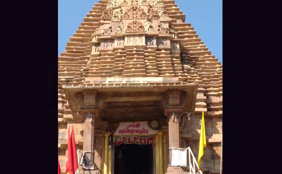 containing all five units of the temple. The entrance porch Mukhmandapa has four pillars with decorated shafts with stencilled scrolls and pot art foliage. The entrance porch is decorated with five looped arches known as the ‘Makara Torana’ wherein the Makara is the mythical aquatic creature that combines the jaws of a crocodile, trunk of an elephant, ears of a lion, horns
