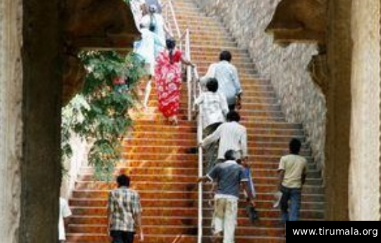 There are two way to reach Tirumala by foot. One is Srivari Mettu (2388 steps and steep) and Alipiri (3550 steps but easy).
