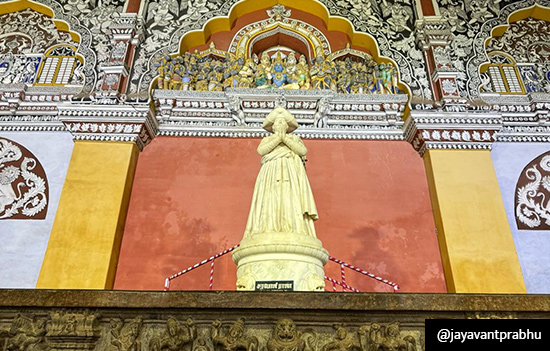 imposing statue of Raja Serfoji besides stunning ceilings. The bronze statues