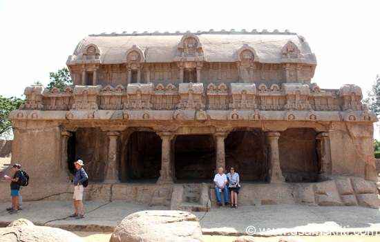There are fifteen cave temples in Mamallapuram and two in Saluvankuppam a village 3 km north of Mamallapuram. The biggest of these caves, the Pancha Pandava cave, was carved along the lines of an ambitious plan of a sanctum in the centre and a circumambulatory path around it.