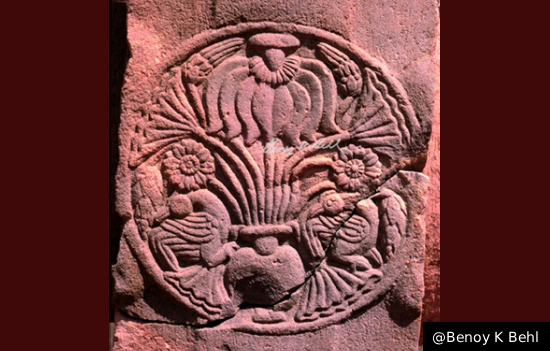 Purnaghata (vase of plenty), detail, vedika, Stupa II, c. 100, BCE. Photograph
