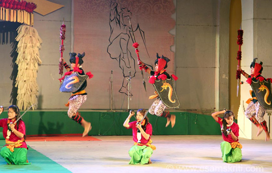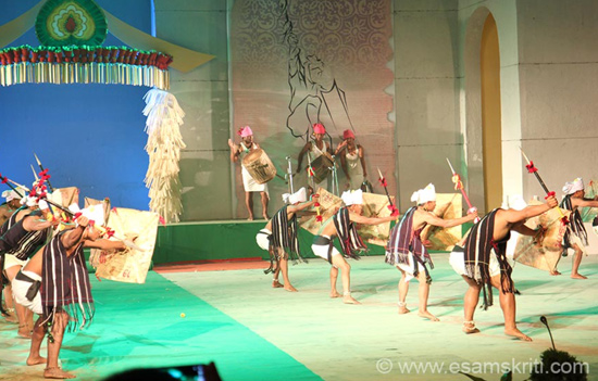 This is performed by dancers who believe in Sankari culture, otherwise known as the followers of Lord Shiva. It is essentially performed by men as they carry the drums tied on the waist along with cymbals and move with the percussion rhythm. This is performed in festivals in Berpeta and Guwahati.