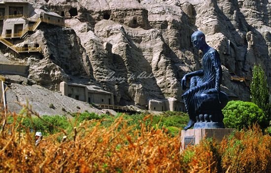Statue of Kumarajiva, Kizil Caves, Kucha, Xinjiang Uygur Autonomous Region, China. Pic by Benoy K Behl.
