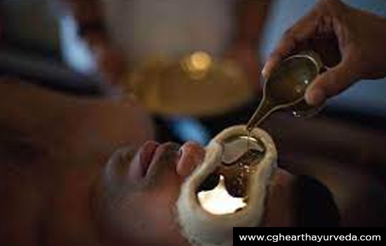 (continuous flow of warm medicated oil on the forehead) and Thakradhara